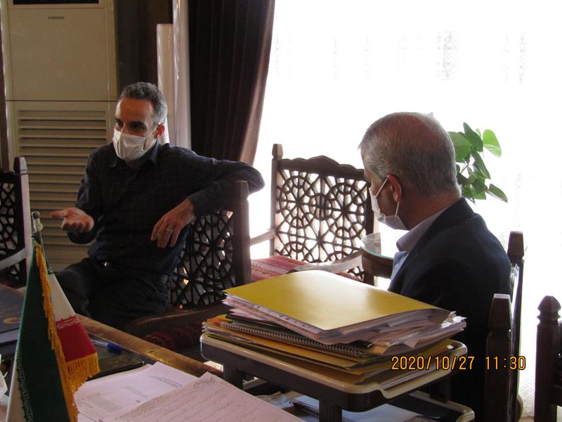 نشست مشترک مهندس کاظم پور سزپرست سازمان باغستان های سنتی و مهندس حافظی مدیر عامل سازمان خدمات طراحی پیرامون پیشبرد اهداف سازمان باغستان ها در حوزه طراحی مهندسی