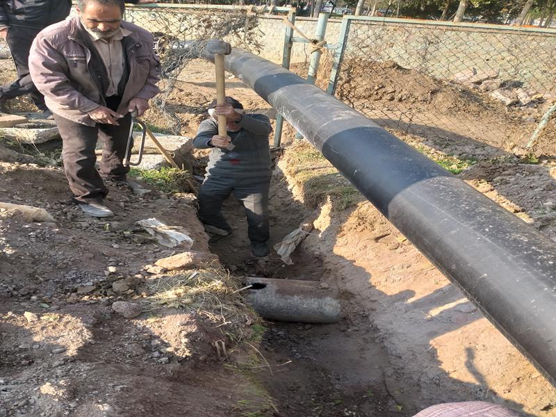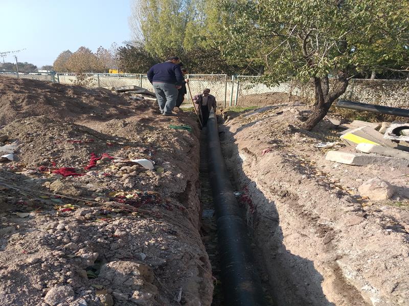 عملیات عمرانی لوله گذاری در سطح باغستان سنتی