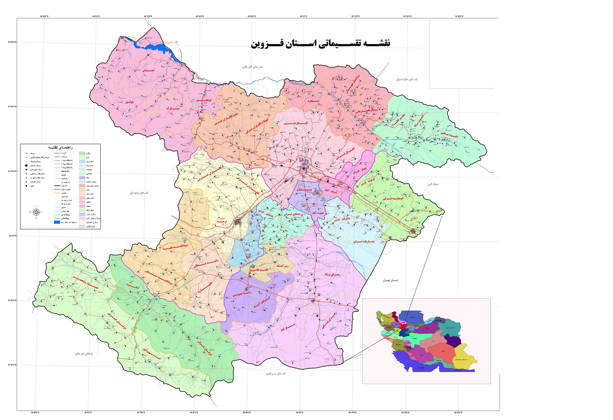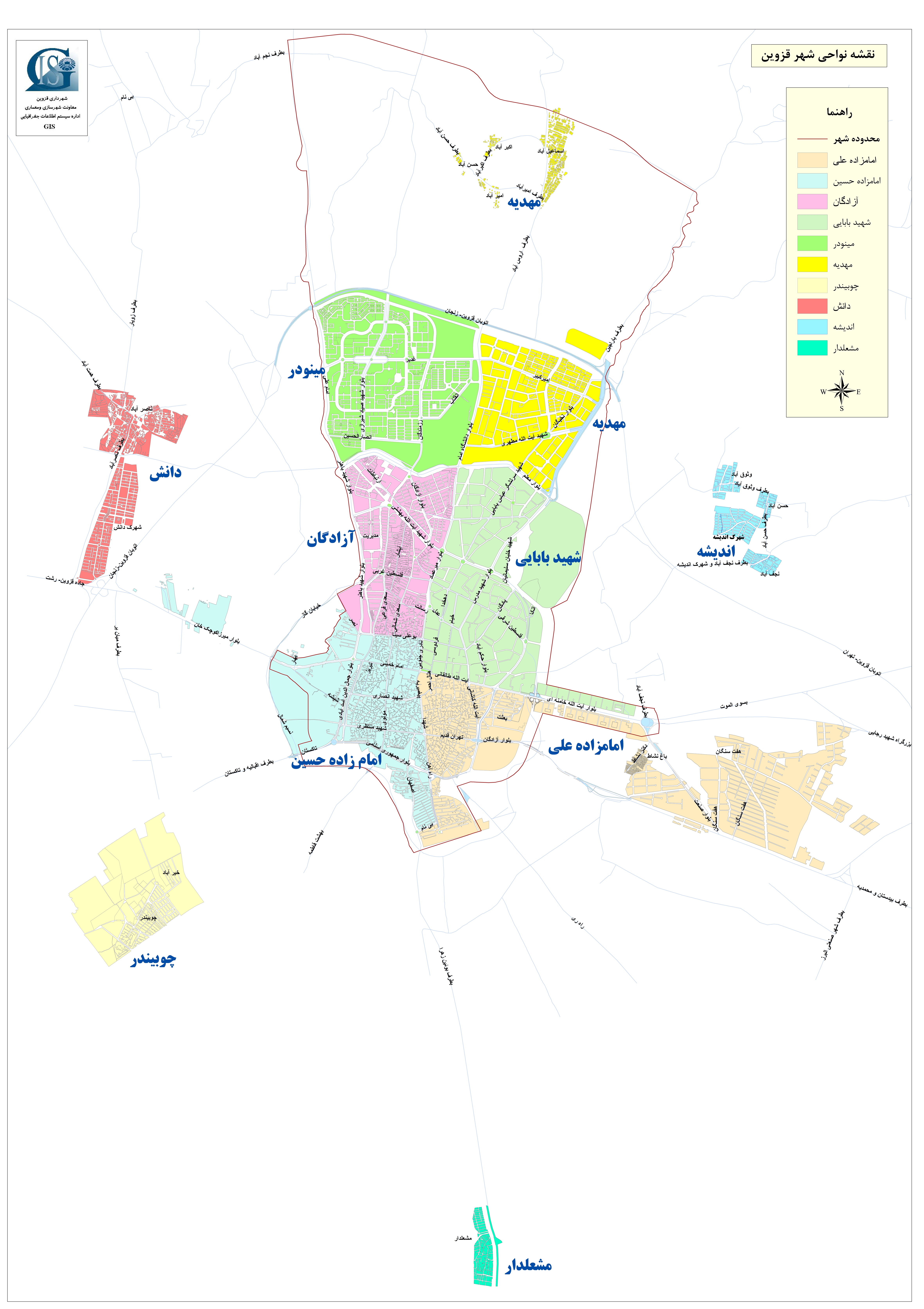 نقشه نواحي شهر قزوين نقشه استان قزوين