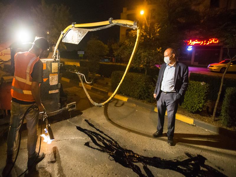 بازدید رئیس و اعضای شورای شهر از روند اجرای نهضت شبانه آسفالت خیابانهای سطح شهر و کمربندی سبز شرق